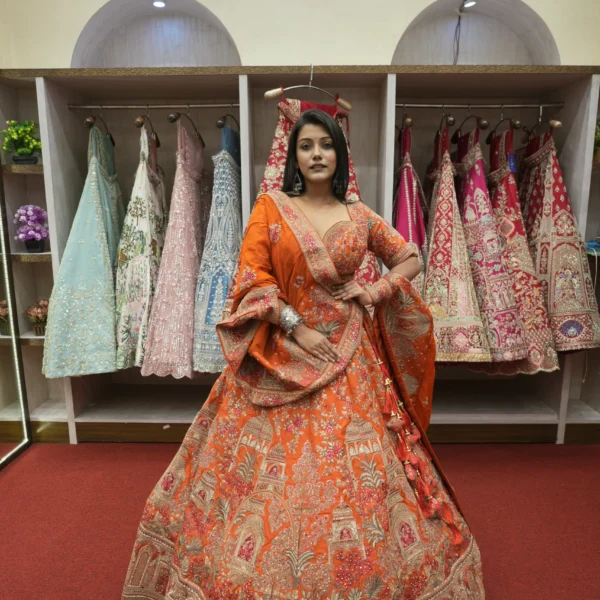 Rust Orange Handwork Bridal Lehenga With Zari Thread and Zardosi Work
